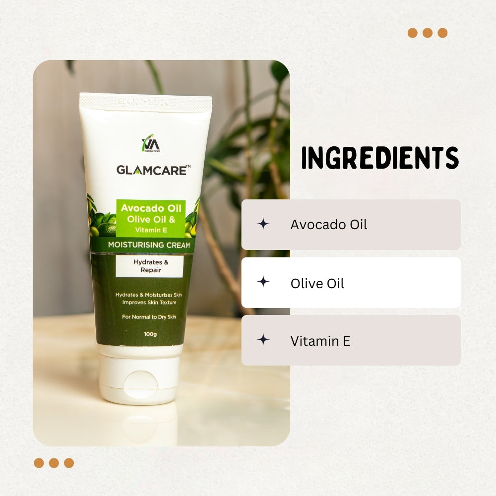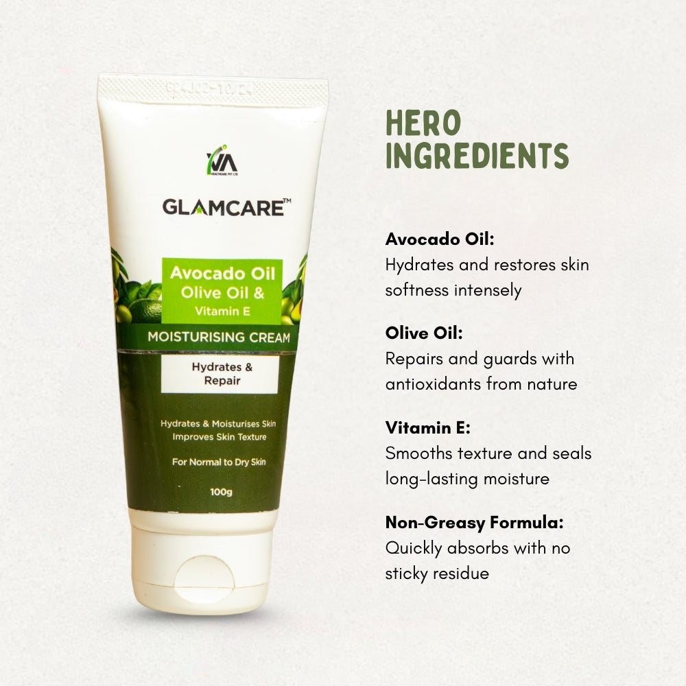 Give your skin the daily dose of hydration it needs — try our Avocado, Olive & Vitamin E Moisturising Cream now!