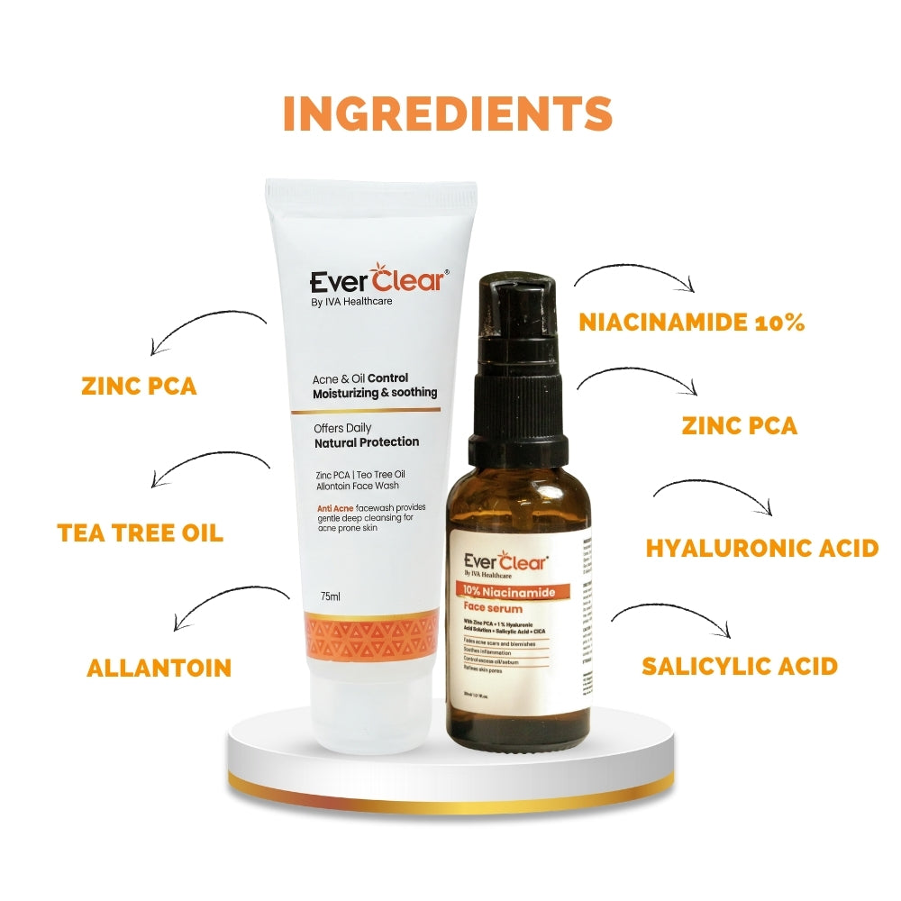 Unit price perSay goodbye to breakouts, excess oil, and stubborn acne with the Everclear Anti-Acne Combo, a comprehensive daily routine designed to cleanse, treat, and prevent acne. This combo pairs the Everclear Anti-Acne Face Wash with the Everclear 10% Niacinamide Face Serum to give you clearer, smoother, and healthier-looking skin.
